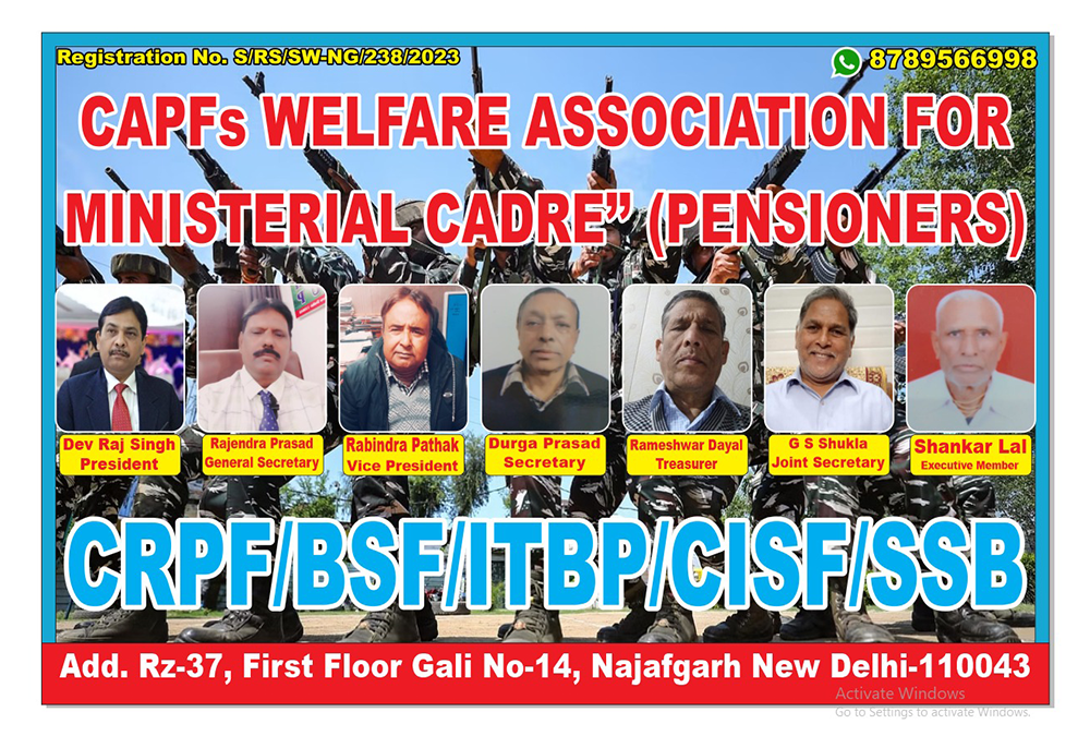 1. To be pursued by the Association are to extend help in service matter to the members of Ministerial Cadre of CAPFs serving and pensioners.To arrange and organize social and cultural functions from time to time.