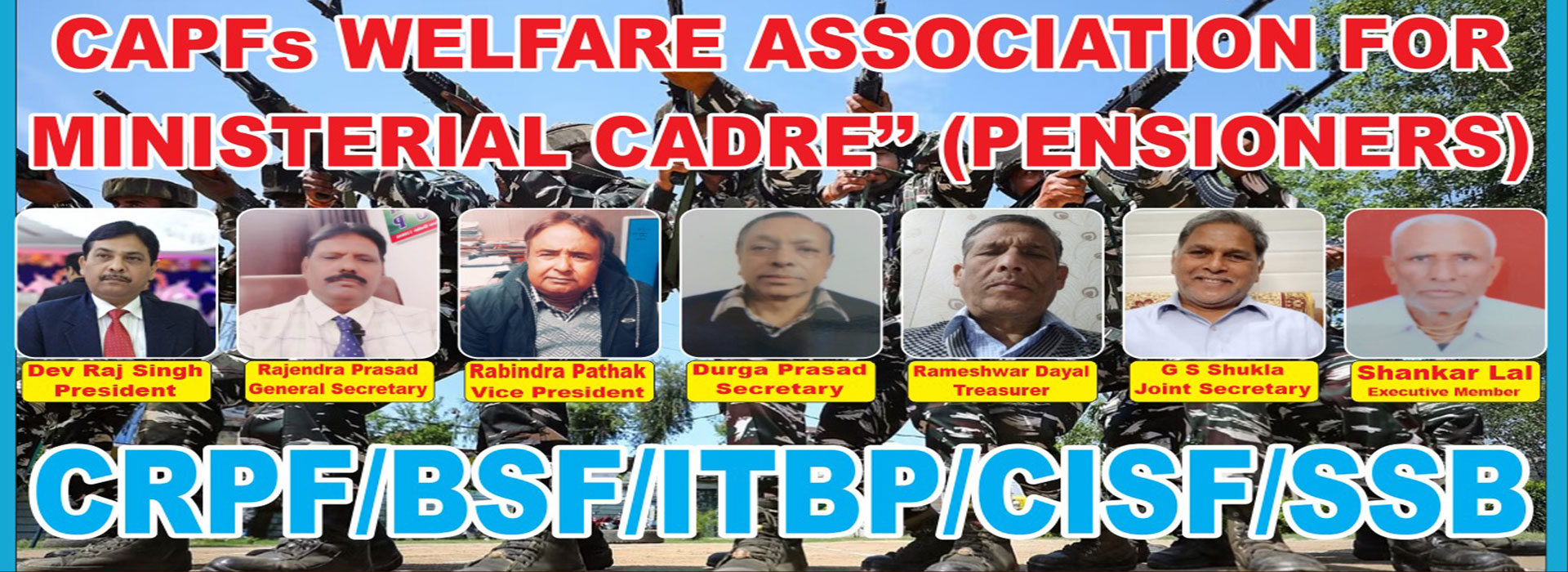 The CAPF Welfare Association is dedicated to supporting the personnel of India’s Central Armed Police Forces (CAPF), including CRPF, BSF, ITBP, SSB, CISF, and Assam Rifles. Our mission is to ensure the well-being of our members and their families by offering services such as medical assistance, financial support, legal aid, educational scholarships, and retirement benefits. We are committed to addressing the needs of our members, advocating for their rights, and fostering a sense of unity and support. Join us today and be part of a community dedicated to the welfare of our brave forces.
